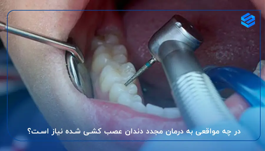 درمان مجدد دندان عصبکشی شده معمولاً در شرایط خاصی نیاز است. اگر دندان مجدداً دچار عفونت شود، ممکن است نیاز به عصبکشی مجدد داشته باشد. این عفونت میتواند به دلایل مختلفی از جمله عدم پاکسازی کامل حفره دندان یا ورود باکتریها از طریق ترکها و شکافها ایجاد شود.